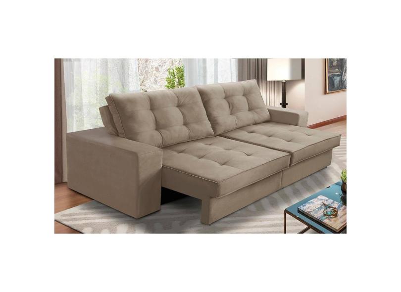 Sofá Retrátil e Reclinável 3 lugares 2,50m com Molas Marcela Suede Cappuccino Adonai Estofados