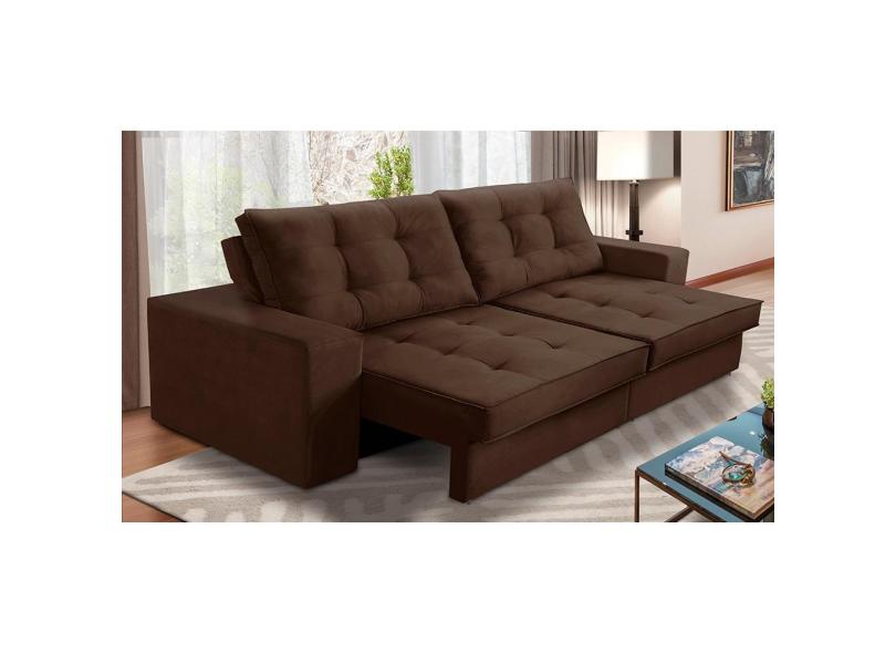 O menor preço encontrado no Brasil para Sofá Retrátil e Reclinável 3 lugares 2,50m com Molas Marcela Suede Marrom Adonai Estofados atualmente é R$ 1.718,91.