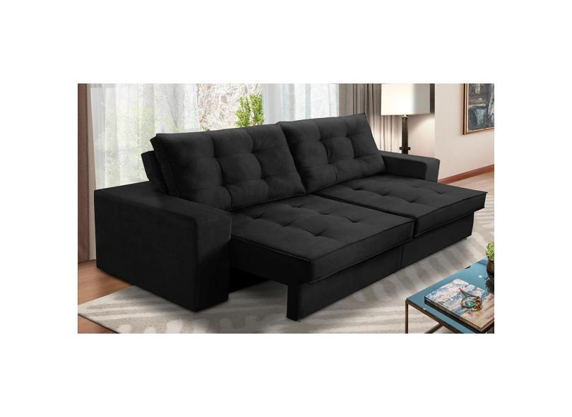 Sofá Retrátil e Reclinável 3 lugares 2,50m com Molas Marcela Suede Preto Adonai Estofados
