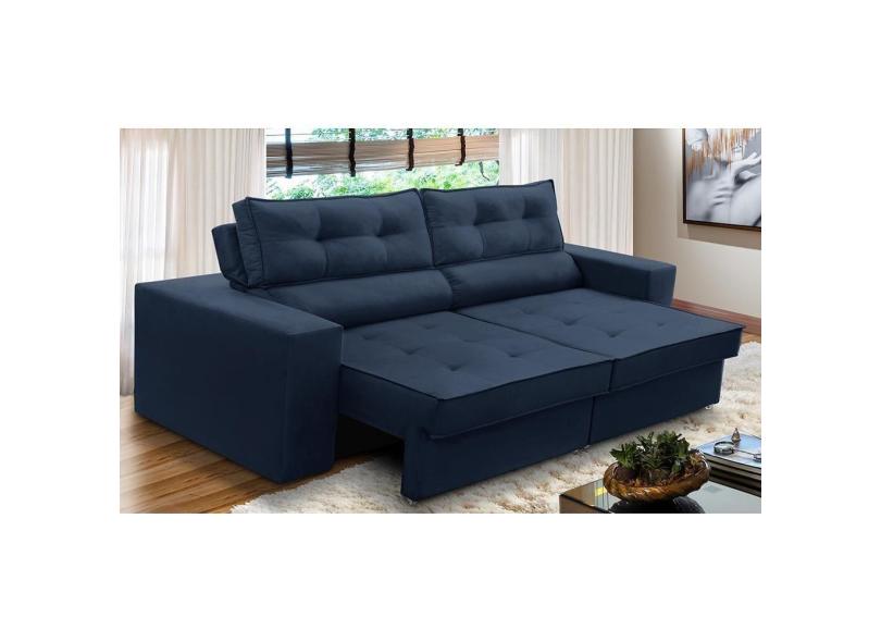 Sofá Retrátil e Reclinável 3 lugares 2,50m com Molas Mirela Suede Azul Adonai Estofados