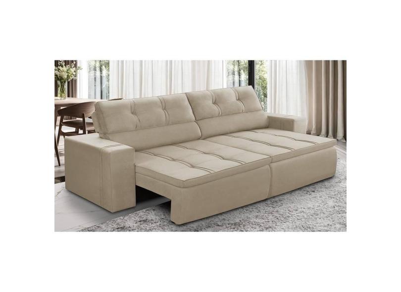 Sofá Retrátil e Reclinável 3 lugares 2,50m com Molas Stella Suede Bege Adonai Estofados