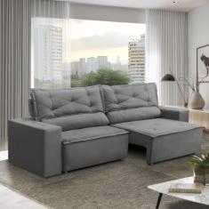 Sofá Retrátil e Reclinável 3 lugares com Molas 1,80m Livia Suede Cinza