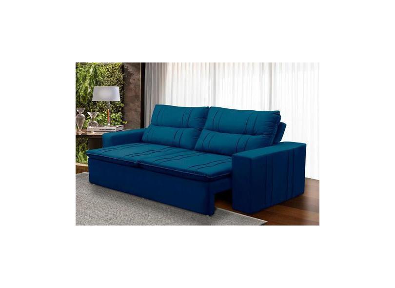 Sofá Retrátil E Reclinável 3 Lugares Com Molas 2,00M Ester Suede Azul