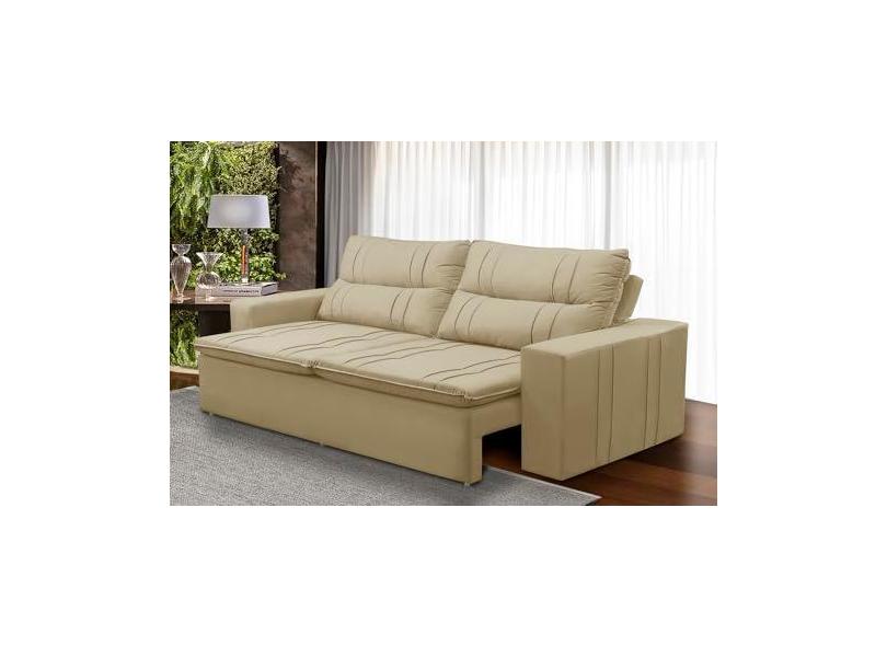 Sofá Retrátil e Reclinável 3 lugares com Molas 2,00m Ester Suede Bege Adonai Estofados