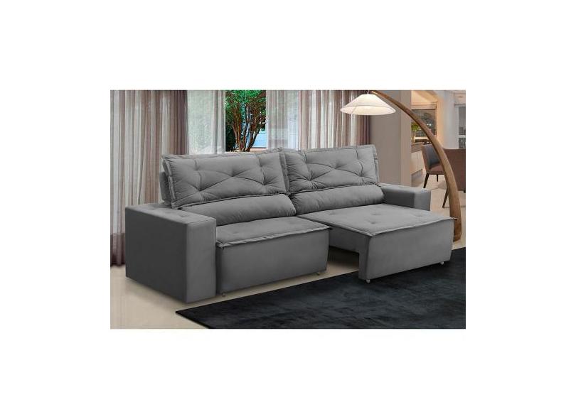 Sofá Retrátil e Reclinável 3 lugares com Molas 2,00m Laura Suede Cinza