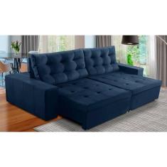 O menor preço encontrado no Brasil para Sofá Retrátil e Reclinável 3 Lugares com Molas 2,10m Duda Suede Azul Adonai Estofados atualmente é R$ 1.079,94.
