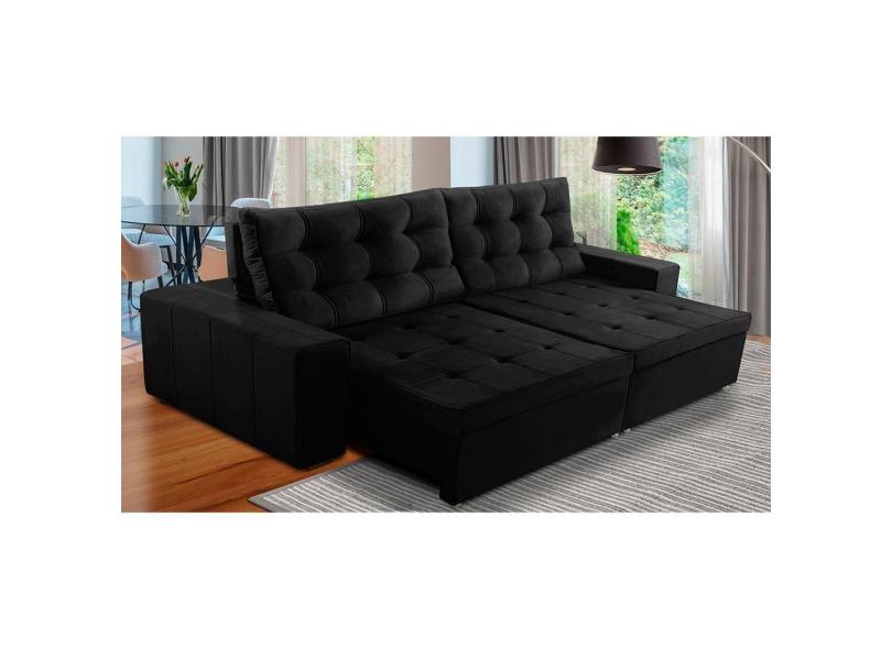 Sofá Retrátil e Reclinável 3 Lugares com Molas 2,10m Duda Suede Preto Adonai Estofados