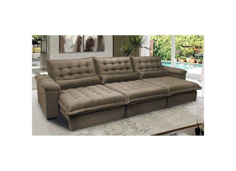 Sofá Retrátil e Reclinável 4,12m com Molas Ensacadas Cama inBox Aconchego. Tecido Velusoft