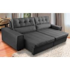 Sofá Retrátil e Reclinável 4 Lugares com Molas 2,70m Camila Suede Cinza Adonai Estofados
