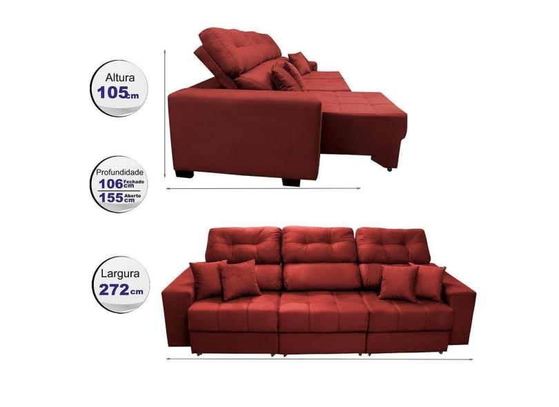 O menor preço encontrado no Brasil para Sofá Retrátil E Reclinável Cama Inbox Diamond 2,72m Tecido Suede Velusoft Vermelho atualmente é R$ 3.888,72.