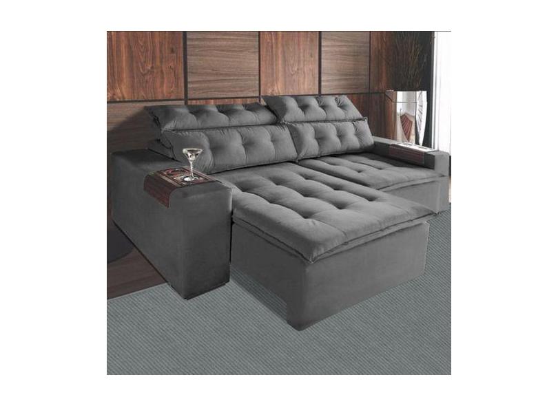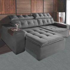 Sofá Retrátil E Reclinável Carioca 2 Metros Cinza -Bonequinha Móveis
