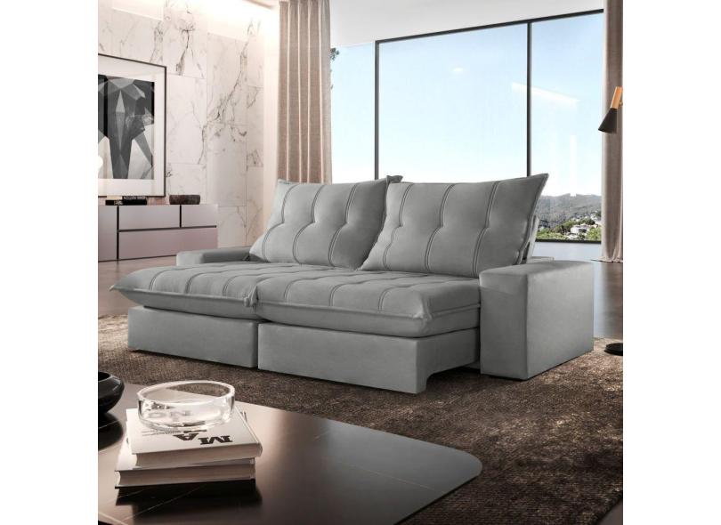 Sofá Retrátil e Reclinável com Catraca Blindada 290cm Porto Veludo Jolie/Prata