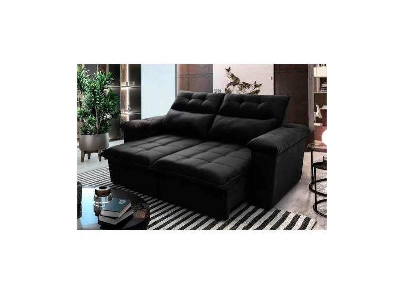 Sofá Retrátil E Reclinável Com Molas Veludo Preto 2.20 - Real Comfort