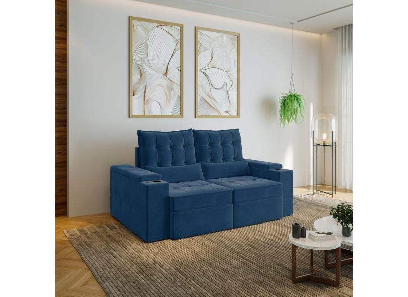 O menor preço encontrado no Brasil para Sofá Retrátil e Reclinável com Porta Copos e Usb 3 Lugares 190cm Embaúba Extra Cabecasa Madeiramadei Azul Diamante atualmente é R$ 3.011,75.
