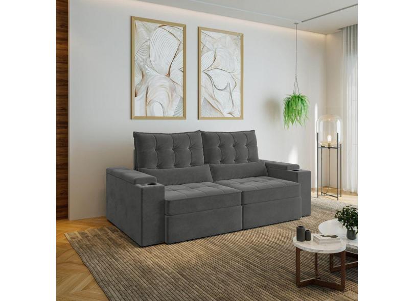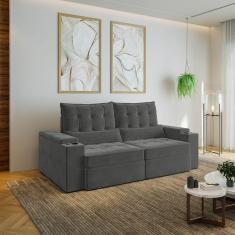 Sofá Retrátil e Reclinável com Porta Copos e Usb 3 Lugares 220cm Embaúba Extra Cabecasa Madeiramadei Grafite Fosco