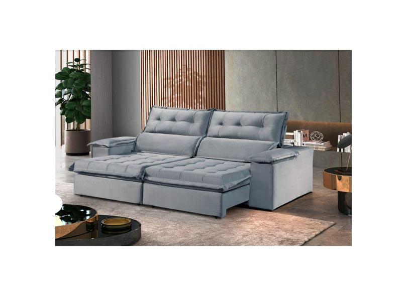 Sofá Retrátil E Reclinável Eros 2,50m 04 Lugares Txr Prata