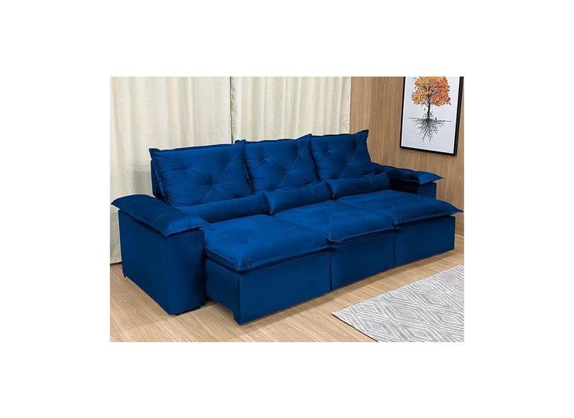 Sofá Retrátil Reclinável 2,70 M Azul 206 Athenas - Master