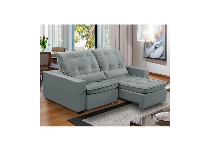 Sofa Retratil Reclinavel 2 Lugares 2,70M Atlantis Veludo Cinza Lansofb