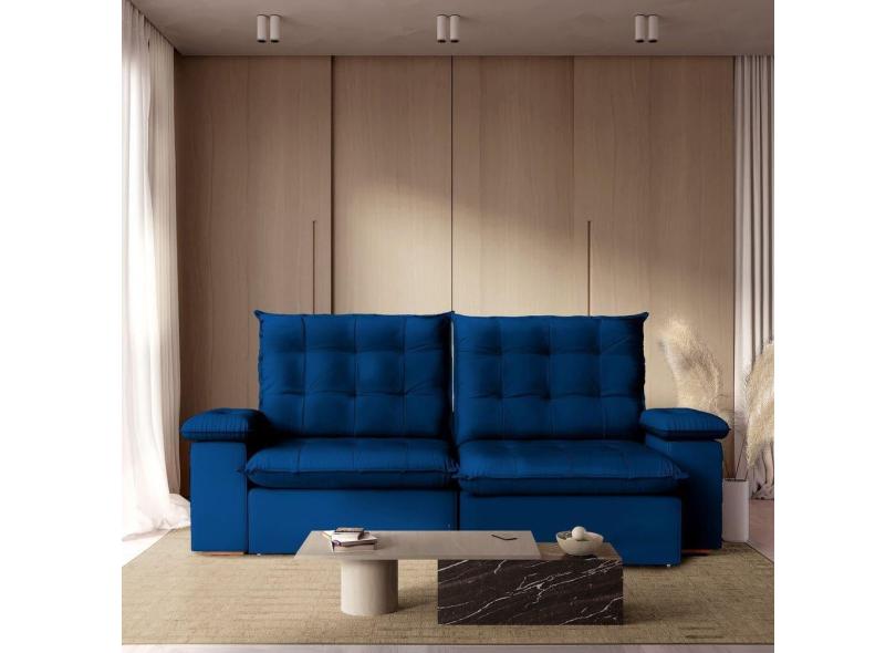 Sofá Retrátil Reclinável 210 Cm Luxor Estofados Veludo Azul