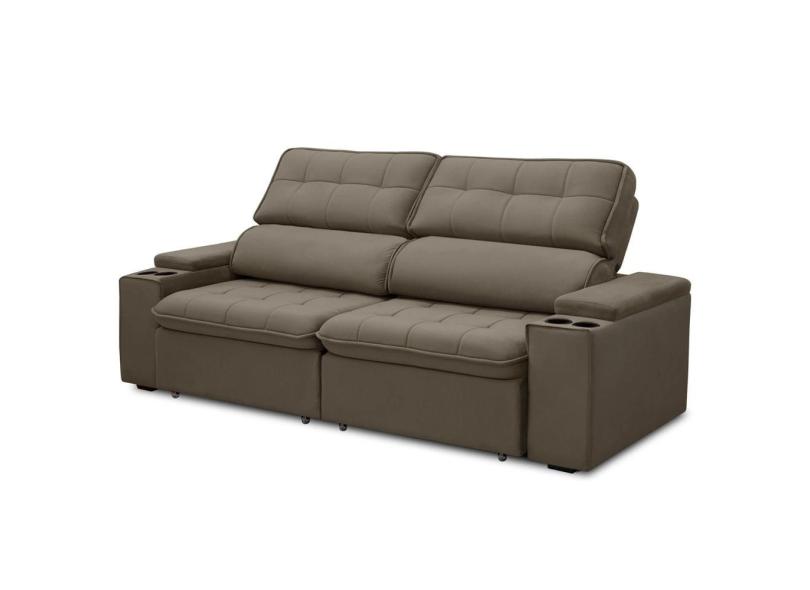 Sofá Retrátil Reclinável 3 Lugares 230cm Ginevra F05 Veludo Castor - Mpozenato