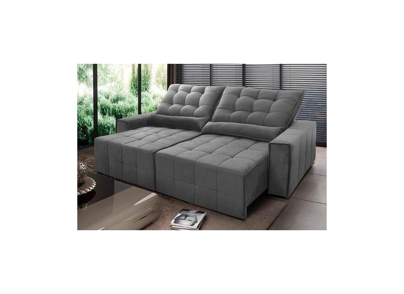 Sofá Retrátil Reclinável Alaska 2,70M Suede Velut Cinza Molas No Assen