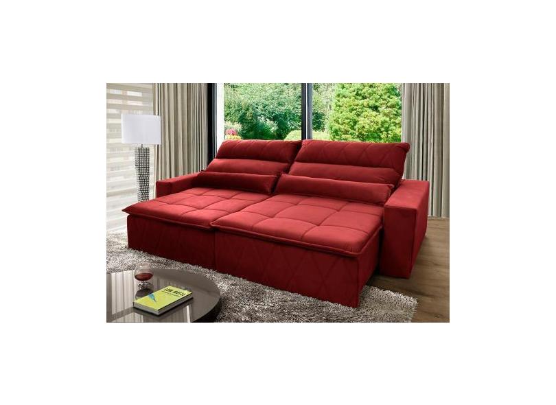 Sofá Retrátil Reclinável Amsterdam 3,00m Suede Velut Vermelho Molas no