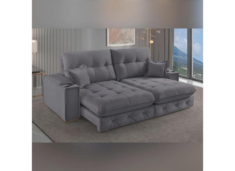 Sofá Retrátil Reclinável com Porta Copos 190cm Istambul Yescasa Cinza