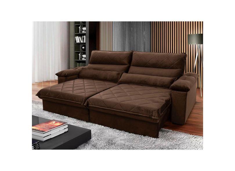 Sofá Retrátil Reclinável Grécia 2,10m Suede Velut Marrom c/ Molas no Assento - King House