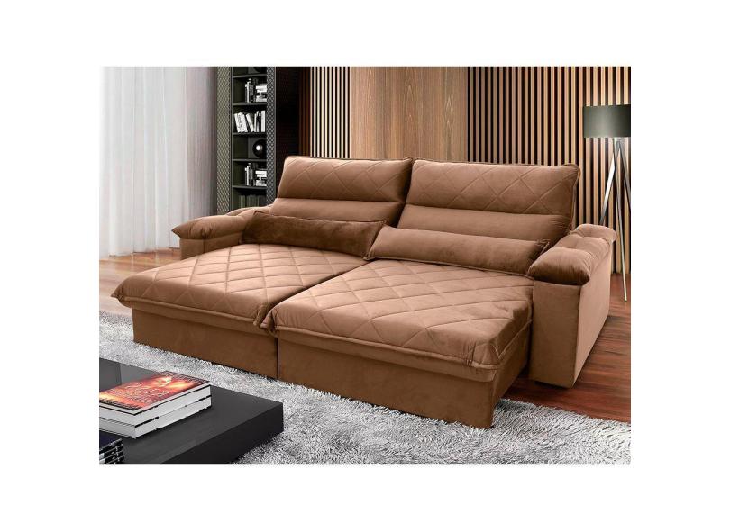 Sofá Retrátil Reclinável Grécia 2,50m Suede Velut Bege c/ Molas no Assento - King House
