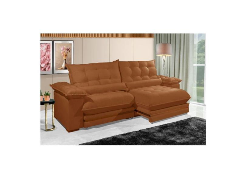 Sofá Retrátil Reclinável IRÃ 2.50m ESTILO ESTOFADOS - França Velusoft COR "TERRACOTA"