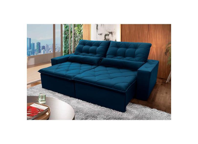 O menor preço encontrado no Brasil para Sofá Retrátil Reclinável Islândia 2,50m Suede Velut Azul Marinho c/ Molas no Assento - King House atualmente é R$ 2.000,90.