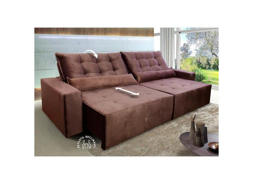 Sofá Retrátil Reclinável Montebello 2,10m Suede Velut Marrom c/ Molas no Assento - King House