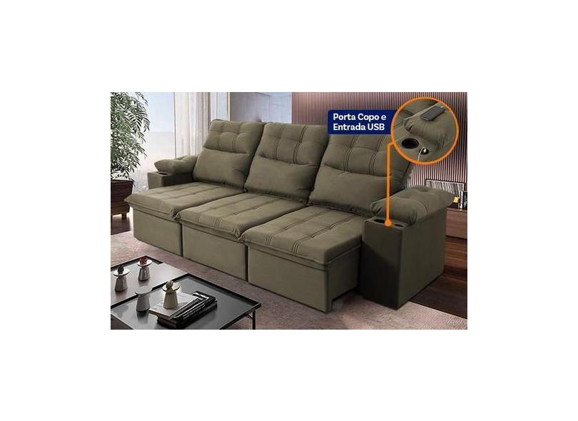 Sofá Retrátil Reclinável Verona Usb + Porta Copo 2,30M Suede Velut Tab
