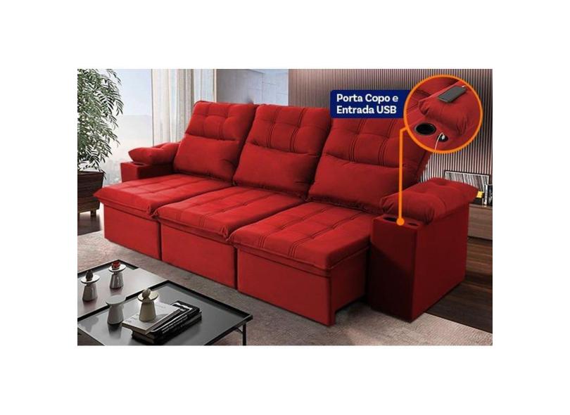 O menor preço encontrado no Brasil para Sofá Retrátil Reclinável Verona USB + Porta Copo 2,30m Suede Velut Vermelho c/ Molas no Assento - King House atualmente é R$ 1.952,57.