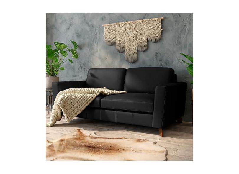Sofá Sala de Estar Living 3 Lugares 220cm Presley Pés Madeira Couro Preto G52 - Gran Belo