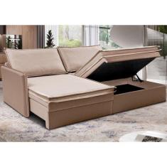 Sofá Sem Caixa Retrátil Baú 1,55m Lounge Linho Bege Escuro Cama inBox