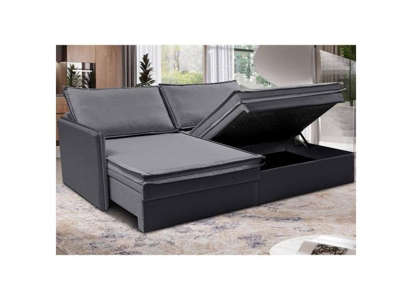 Sofá Sem Caixa Retrátil Baú 1,75m Lounge Linho Cinza Escuro Cama inBox