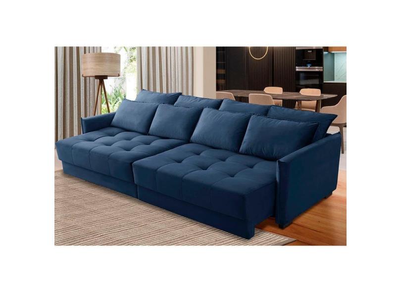 Sofá Sem Caixa Retrátil Reclinável 2,10m Clara Veludo Azul Kaleo Decor