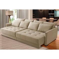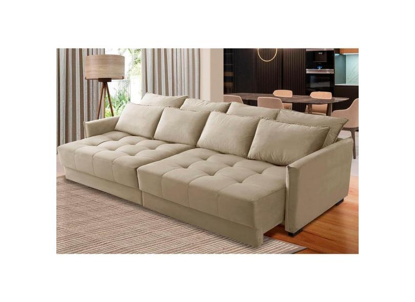 Sofá Sem Caixa Retrátil Reclinável 2,10m Clara Veludo Bege Kaleo Decor