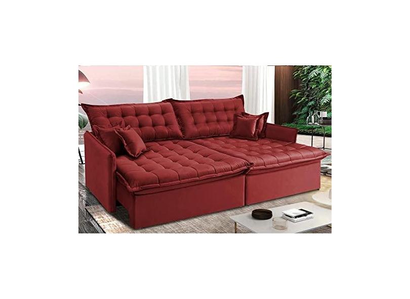 Sofá Sem Caixa Retrátil Reclinável 2,15m Cama Inbox Versátil de Pillow Top e Molas Velusoft Vermelho