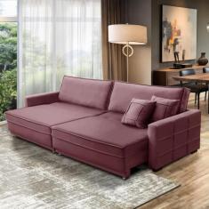 Sofá Sem Caixa Retrátil Reclinável 2,30m Karen Veludo Rosê Adonai Estofados