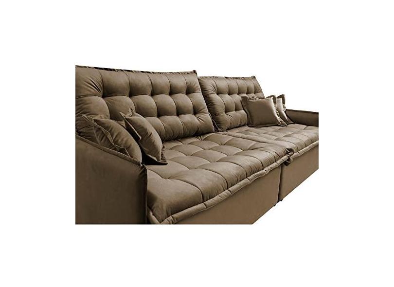 Sofá Sem Caixa Retrátil Reclinável 2,35m Cama Inbox Versátil com Pillow Top e Molas Velusoft Castor