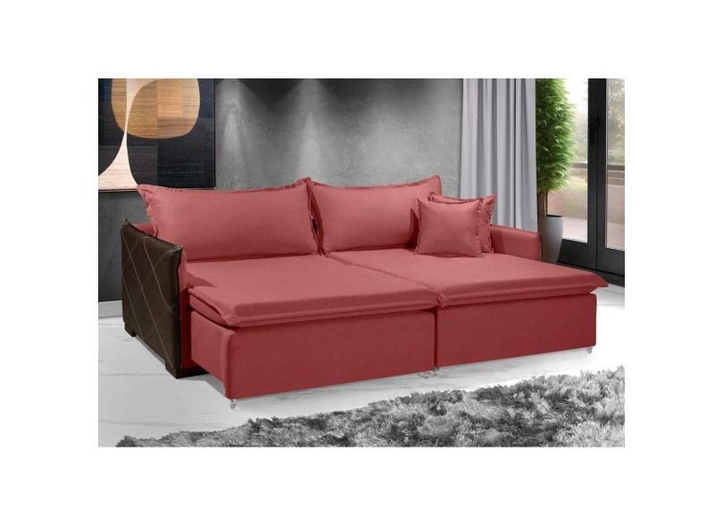 Sofá Sem Caixa Retrátil Reclinável MÔNACO 2,40m ESTILO ESTOFADOS - França Linhosoft COR "Vermelho"