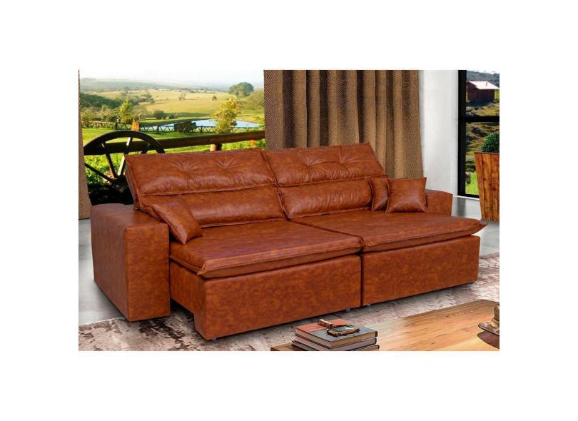 Sofá Tourino 2,32m Retrátil e Reclinável Molas e Pillow no Assento Courino Caramelo - Cama InBox