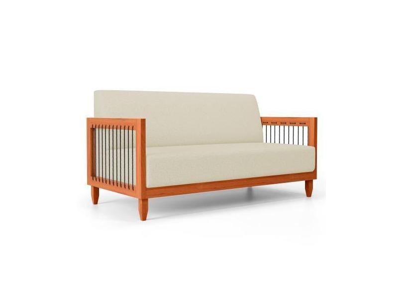 Sofá Varanda Samoa Madeira Maciça 02 Lugares Com Cordas Náutica Linho