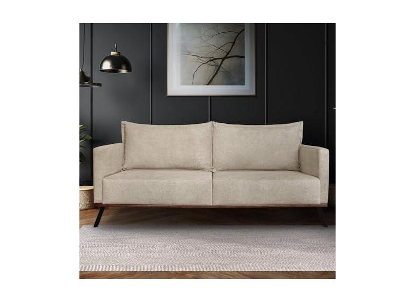 Sofá Zeki 3 Lugares 200 Cm Linho Boucle Bege
