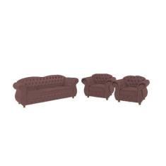 Um Sofá 3 Lugares + Duas Poltronas Chesterfield Merlo- Veludo Rosê / d