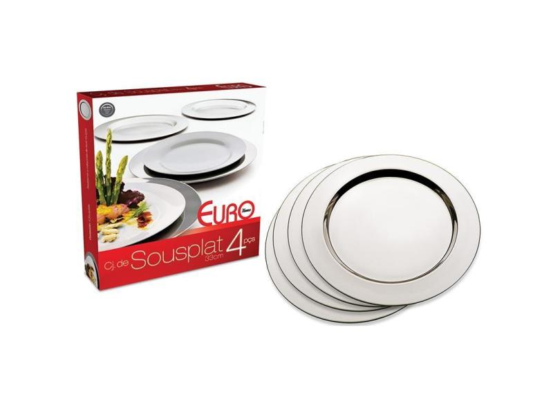 Conjunto Sousplat 33cm - 4 peças - Euro Home - Inox