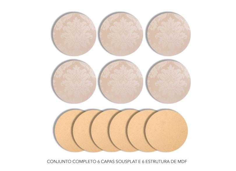 Kit 6 Sousplat c/capa Tecido Jacquard bege s8