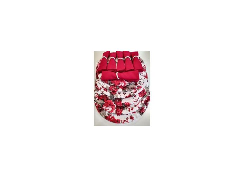 KIt Sousplat Jaquard Estampado 8 Lugares - Vermelho